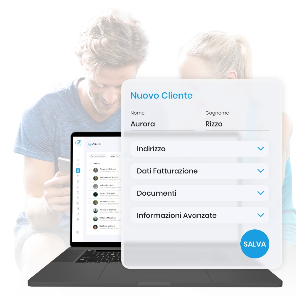 Una sezione dedicata alla gestione della contabilità che ti permetterà di visionare vendite e pagamenti, gestire i documenti d’acquisto, registrare le vendite di prodotti (come, ad esempio, gadget o integratori), o registrare le tue spese presso i fornitori. Tutto questo in modo veloce, sicuro e intuitivo!